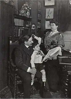 ![]() Alfred Halm and family in 1905, his American-born wife Minnie Landes and son, Harry. | |