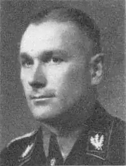 From 25 April 1939 to 30 April 1941, Rodenbücher occupied the new position of Higher SS and Police Leader (HSSPF) Alpenland based in Salzburg, and from 1 June simultaneously commanded the SS-Oberabschnitt Alpenland.[5] He was relieved of both positions for conspiring with the Gauleiter of Reichsgau Carinthia, Franz Kutschera, to absorb Reichsgau Salzburg into his jurisdiction.[6] Rodenbücher was offered the lower position of SS Police Leader (SSPF) in the new German administration of Latvia but refused the posting. He was then technically transferred to the staff of Reichsführer-SS Heinrich Himmler. However, in reality, he was posted to the Kriegsmarine until the end of the war. He acquitted himself well, rising to the rank of Korvettenkapitän and earning the Iron Cross, 1st and 2nd class. After the end of the war, Rodenbücher was held by the British as a prisoner of war until 1948.[2]