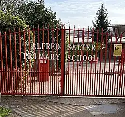 in 1990 a plaque to mark Dr Salter's birthplace was unveiled in Greenwich. The Alfred Salter Primary School was opened in 1995 to meet the growing demand for school places in Rotherhithe, due to the redevelopment of the old Surrey Docks.[21] The Alfred Salter Bridge is a footbridge leading off Watermans Lane, between Stave Hill and Redriff Road, near Greenland Dock as part of the Russia Dock Woodland.[22] In 2002 a plaque to Alfred Salter, also mentioning Ada, was unveiled at Bermondsey tube station.[23]