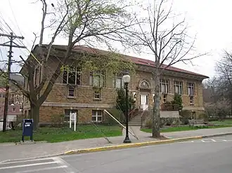 Alfred Village Historic District is a national historic district located at Alfred in Allegany County, New York, in the United States. The district consists of 55 acres (22 ha) and includes 133 properties (154 contributing elements). Structures in the district date from about 1818 to the 1930s and include a variety of popular American architectural styles. The district is predominantly residential with occasional examples of commercial, religious, and civic architecture. The most striking feature of the district is the wealth and quality of terra cotta as a building material and for decorative detail.[2]