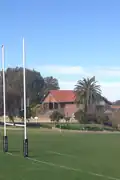 In 1933 an Old Newingtonian grazier and author, William Glasson, donated two thousand pounds for the erection of a grandstand between the college ovals. The Glasson Pavilion was designed by Warden in conjunction with another Old Newingtonian architect, Arthur Anderson. It has seating on the southern side for three hundred and fifty-six people and for half that on the northern side. It was planned so that the pavilion, which was in an overblown Federation Bungalow style could be extended to the east, although this didn't eventuate. The building also included dressing rooms, tea-rooms and a ladies' retiring room.[19]