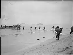 On November 8, 1942, the invasion of Algiers began with landings on three beaches—two west and one east. Major-General Charles W. Ryder commanded the landing forces, which included the British 78th Infantry Division's 11th Brigade Group and the US 34th Infantry Division's 168th and 39th Regimental Combat Teams. British 78th Infantry Division's 36th Brigade Group remained in reserve.[24] Despite some landings going astray, the lack of French opposition rendered this inconsequential. Coastal batteries had been neutralized by the French Resistance, and one French commander switched allegiance to the Allies. The only conflict occurred in the port of Algiers during Operation Terminal, where two British destroyers aimed to prevent the French from destroying port facilities and ships. Heavy artillery fire hindered one destroyer, but the other managed to land 250 Rangers before being forced back to sea.[22]