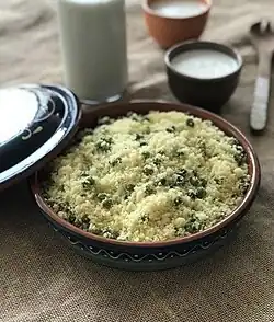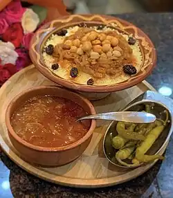 T'aam b'l-hchim or dried meat couscous: a type of couscous dish that is made with dried meat as a main ingredient.[40]