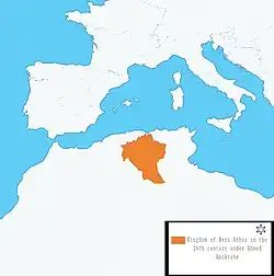 The Kingdom of Tlemcen or Zayyanid Kingdom of Tlemcen (Arabic: الزيانيون) was a Berber[138][139] kingdom in what is now the northwest of Algeria. Its territory stretched from Tlemcen to the Chelif bend and Algiers, and at its zenith reached Sijilmasa and the Moulouya River in the west, Tuat to the south and the Soummam in the east.[140][141][142]