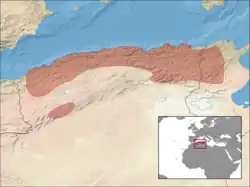 It is native to northern Algeria and northern Tunisia, where it occurs on the Mediterranean coast.[1]