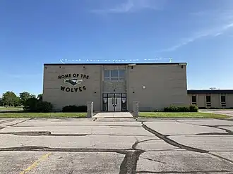Algoma High School opened in 1885. It was housed with the grade school in various different buildings, including a Public Works Administration building. In 1966, a referendum to build a new school passed, with that building opening in 1969.[2]