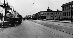 Alhambra's main business district, at the intersection of Main and Garfield, has been a center of commerce since 1895.[10] By the 1950s, it had taken on an upscale look and was "the" place to go in the San Gabriel Valley. While many of the classic historical buildings have been torn down over the years, the rebuilding of Main Street has led to numerous dining, retail, and entertainment establishments. Alhambra has experienced waves of new immigrants, beginning with Italians in the 1950s, Mexicans in the 1960s, and Chinese in the 1980s. As a result, a very active Chinese business district has developed on Valley Boulevard, including Chinese supermarkets, restaurants, shops, banks, realtors, and medical offices. The Valley Boulevard corridor has become a national hub for many Asian-owned bank headquarters, and there are other nationally recognised retailers in the city.