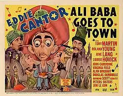 Ali Baba Goes to Town is a 1937 American musical comedy film directed by David Butler and starring Eddie Cantor, Tony Martin, and Roland Young. Cantor plays a hobo named Aloysius "Al" Babson, who walks into the camp of a movie company that is making the Arabian Nights. He falls asleep and dreams he is in Baghdad as an advisor to the Sultan (Young). He organizes work programs, taxes the rich, and abolishes the army, in a spoof of Roosevelt's New Deal. This film was the second of three in which Shirley Temple and Cesar Romero appeared together, second was Wee Willie Winkie (1937) and The Little Princess (1939).[1]