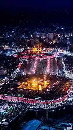 The fallen supporters of Husayn were buried by some men of the Banu Asad tribe from the al-Ghadiriyya village. In particular, Ali al-Akbar was buried next to his father. Today, the two tombs are located under the central dome of the shrine of Husayn in the city of Karbala, in present-day Iraq.[3] The city developed around the shrine and has become a destination for pilgrimage and a center for religious learning.[32] There are also passages devoted to Ali al-Akbar in the supplications recited by pilgrims.[1] He left no descendents.[2]