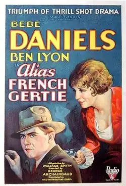 Alias French Gertie is a 1930 American pre-Code crime film directed by George Archainbaud from a screenplay by Wallace Smith, based upon the unproduced play The Chatterbox by Bayard Veiller. The film stars Bebe Daniels and Ben Lyon, who were making their first on-screen appearance together.[3] A copy of this film survives in the Library of Congress.[4]