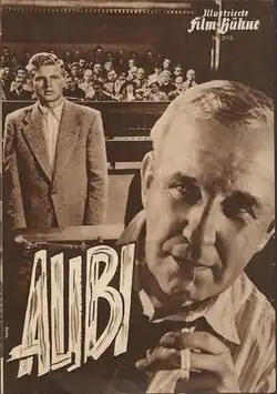 Alibi is a 1955 West German crime drama film directed by Alfred Weidenmann and starring O.E. Hasse, Martin Held and Hardy Krüger.[1] It was shot at the Tempelhof Studios in West Berlin and on location in Hamburg. The film's sets were designed by the art director Rolf Zehetbauer.