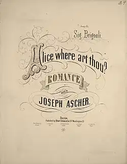 Alice, Where Art Thou? is a popular British parlour song of the Victorian era. It was composed by Joseph Ascher.[1] The text was by Wellington Guernsey, although it is sometimes attributed to Alfred Bunn, who is best known for "I Dreamt I Dwelt in Marble Halls".[2] It became a popular song, selling many copies of sheet music and featuring regularly as a standard in the music halls.
