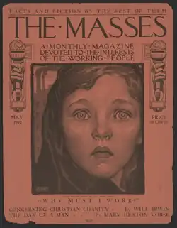 Alice Beach Winter used her artistic abilities to promote feminist and socialist ideals. She was particularly known for her illustrations that depicted different progressive ideals, with a focus on advocating for women's rights and suffrage. Her ability to capture the innocence and beauty of children in her portraits was also a major contributor to her fame as an artist.[9] Winter's contributions to the suffrage movement were significant, and her illustrations were frequently featured in political magazines such as The Masses.[10] This publication was known for promoting progressive ideas such as women's suffrage, equal opportunity, and labor inequality. Winter's illustrations played a crucial role in conveying these messages and advocating for social and political change. During the early 1900s, the rapid advancement of technology made spreading information through magazines and newspapers an increasingly powerful tool for reaching the public in a quick and captivating manner. Winter recognized the significance of this and contributed her illustrations to political magazines, helping to spread awareness of feminist and ideals to a broader audience.[11]