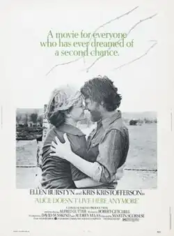 Alice Doesn't Live Here Anymore is a 1974 American romantic comedy drama film[2] directed by Martin Scorsese and written by Robert Getchell.[3] It stars Ellen Burstyn as a widow who travels with her preteen son across the Southwestern United States in search of a better life. Kris Kristofferson, Billy "Green" Bush, Diane Ladd, Valerie Curtin, Lelia Goldoni, Vic Tayback, Jodie Foster, Alfred Lutter, and Harvey Keitel appear in supporting roles.[3]