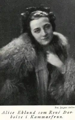 Alice Eklund (21 July 1896 – 6 October 1983) was a Swedish stage and TV actress. She also directed one film in 1936.[1]