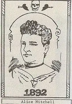 Alice Jessie Mitchell (November 26, 1872 – March 31, 1898) was an American woman who gained notoriety for the murder of her lover, Freda Ward. On January 23, 1892, the 19-year-old Mitchell cut the throat of Ward, then 17 years old.[1] Mitchell was subsequently found insane by means of a jury inquisition and placed in a psychiatric hospital until her death in 1898.[2]