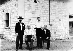 Construction of the telegraph station began adjacent to the waterhole in November 1871 under the supervision of Gilbert Rotherdale McMinn.[2] A number of structures were eventually built, including a harness room, buggy shed, police station, blacksmith's workshop, telegraph office, kitchen building and station master's residence. Supplies arrived from Adelaide just once per year, so self-sufficiency was critical. Stockyards and a large garden area were also developed. While the waterhole supplied the settlement with water, a well was later sunk to maintain supply during drought periods.[4] After completion, the telegraph station operated for 60 years.