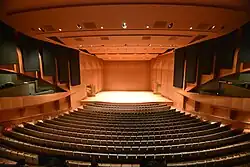 Alice Tully Hall is a concert hall at the Lincoln Center for the Performing Arts on the Upper West Side of Manhattan in New York City. The hall is named for Alice Tully, a New York performer and philanthropist whose donations assisted in the construction of the hall. Tully Hall is located within the Juilliard Building, a Brutalist structure, which was designed by architect Pietro Belluschi. It was completed and subsequently opened in 1969. Since its opening, it has hosted numerous performances and events, including the New York Film Festival. Tully Hall seats 1,086 patrons.[1] It is the home of the Chamber Music Society of Lincoln Center.