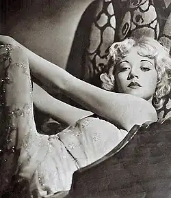 After playing a succession of flappers and gold diggers, she attracted the attention of director and producer Mervyn LeRoy, who saw potential in her. Her screen debut was in The Sea Tiger (1927).[2] Her early films included Show Girl (1928), which had Vitaphone musical accompaniment but no dialog, and its musical sequel Show Girl in Hollywood (1930), both released by Warner Brothers and both based on novels by J.P. McEvoy. In these two films, White appeared as Dixie Dugan. In October 1929, McAvoy started the comic strip Dixie Dugan with the character Dixie having a "helmet" hairstyle and appearance similar to actress Louise Brooks. White also used the services of Hollywood 'beauty sculptor' Sylvia of Hollywood to stay in shape.[6]