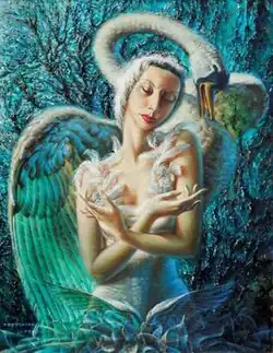 Alicia Markova "The Dying Swan" is a 1949 painting by Vladimir Tretchikoff. (It is also known simply as The Dying Swan, but is not to be confused with another Tretchikoff painting with the same title.) The painting depicts the prima ballerina Alicia Markova in her most famous role, The Dying Swan, from which she became inseparable in the minds of the public; it is for this reason that the artist painted the swan and Markova as one and the same being.[1]