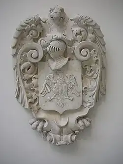 Stemma (Italian: coat-of-arms) of the Alidosi family from former Palazzo Alidosi at Cesena in Italy. Istrian stone, Medieval and Renaissance Gallery, Victoria & Albert Museum, London [1].