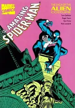 The Alien Costume Saga is a superhero comic book story arc published by Marvel Comics and centred on the character Spider-Man. It was originally published in the comic book series The Amazing Spider-Man #252–263, The Spectacular Spider-Man #90–100, Marvel Team-Up #141–150 and Web of Spider-Man #1 from May 1984 to April 1985. It features Spider-Man wearing the alien costume he brought home from Battleworld during the Secret Wars limited series and his subsequent discovery that the new costume is alive.