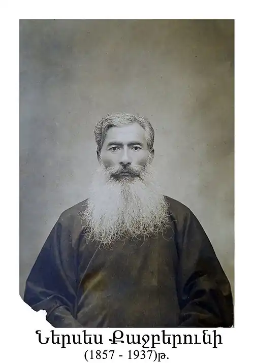 Nerses Kajberuni was a priest from Payazit (Old Bayazet). He escaped the Ottoman Empire during the Genocide and raised his family in Yerevan. Kajberuni was executed by the Communist Party members in 1937 due to his religious affiliation.