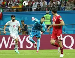 Alireza Safar Beiranvand (Persian: علیرضا بیرانوند; born 21 September 1992) is an Iranian professional footballer who plays as a goalkeeper for the Persian Gulf Pro League club Tractor S.C. and the Iran national team.[2][3]