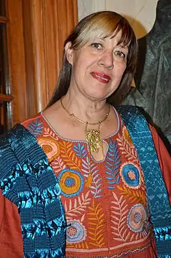 Aliria Morales (born March 18, 1950)[1] is a Mexican artist, who works in various media, including the creation of artistic dresses. Her work has been recognized with membership in the Salón de la Plástica Mexicana and various awards.