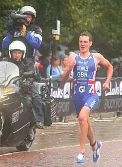 His father Keith was a runner, while his mother Cathy was a swimmer.[16] The eldest of three boys, he has two younger brothers, Jonathan and Edward (b.1995). His younger brother Jonathan Brownlee is also a triathlete, winning the bronze medal at the 2012 Summer Olympics, the silver medal at the 2016 Summer Olympics, and a gold medal in the mixed relay triathlon at the 2020 Summer Olympics and his youngest brother Edward is also a keen sportsman but prefers rugby and water polo over the triathlon.[17]