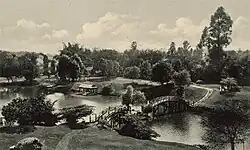 The park was first created with the help of Japanese landscapers in 1929, with artificial hills and an artificial lake. The Alkaff Gardens was opened to the public in January 1930,[4] the park was known as first Japanese garden in Singapore and was an attraction for both visitors and residents alike.[5] The tea-houses could be rented by people who visited the park and there were boating and fishing facilities.