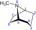Ornithine or arginine → putrescine → N-methylputrescine → N-methyl-Δ1-pyrroline[55] | Atropine, scopolamine, hyoscyamine[54][57][58] |