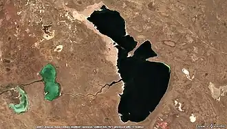 The lake lies in the western part of May District, 70 kilometers (43 mi) northeast of the town of Bayanaul.[2][3]