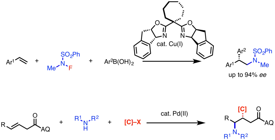 - ^ Liwosz, T. W.; Chemler, S. R. (2012). "Copper-catalyzed enantioselective intramolecular alkene amination/intermolecular heck-type coupling cascade". J. Am. Chem. Soc. 134 (4): 2020–2023. doi:10.1021/ja211272v. PMC 3314298. PMID 22257169.