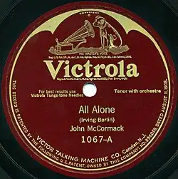 "All Alone" is a popular waltz ballad composed by Irving Berlin in 1924. It was interpolated into the Broadway show The Music Box Revue of 1924 where it was sung by Grace Moore and Oscar Shaw. Moore sat at one end of the stage under a tightly focused spotlight, singing it into a telephone, while Oscar Shaw sat at the other, doing the same.[1]