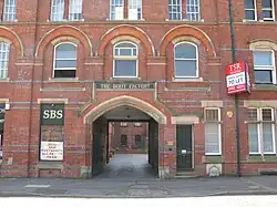 The former premises of James Baker & Sons Ltd, boot manufacturers stands on Vicarage Road and Cleveland Road. The business started out in 1850 making industrial footwear, but later changed to boots and shoes.[6] The factory dates from 1861 and was extended to Powlett Street in 1898. It is Grade II listed and has a courtyard plan.[7] The firm closed in the 1970s.[8]