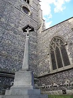 At the south western corner of the church is a memorial to men of the parish who died during the First World War. The inscription reads: "In memory of those who from this parish and congregation laid down their lives for their King and country, 1914-1918. For all live unto Him. Luke XX." There is a separate, smaller memorial to the side dedicated to F.A. Munford of H.M.S. Sharpshooter. In all, 54 men of the parish are recorded as having lost their lives during the Great War.