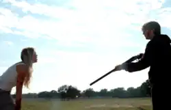 That night, Jake gets offended over a joke and storms off to a nearby barn, where Marlin performs oral sex on him. They have another argument and, after Jake walks back to the house, an unseen assailant knocks Marlin out and breaks her jaw with the barrel of a shotgun. Back at the house, Jake unsuccessfully attempts to woo Mandy. Anxious about Marlin, Jake then takes Red's shotgun and pickup truck to go search for her. He eventually finds her sitting by a remote lake. Upon closer look, he sees her mangled face, and is confronted by Emmet, seeking vengeance for the humiliation he has suffered. Emmet shoots Jake in the head and breaks Marlin's neck, killing both.