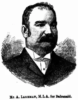 In the late 1880s Lakeman was in partnership with James Bowes in a business as commission and land agents.[2][3] The partnership continued until Bowes' death in March 1889.[20]