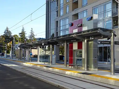Allen is a stop on the Region of Waterloo's Ion rapid transit system.[1] It is located in the median of King Street in Waterloo, between Allen and John Streets. It opened in 2019.