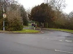 ![]() Behind this bus stop is the motte and bailey of Allesley Castle | |