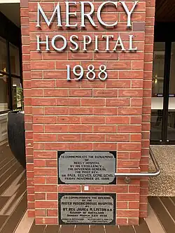 With the closure of the maternity service the hospital could put added emphasis on its care of the dying basing it on the model of St Christopher's Hospice in London and other English hospices.[32] The St Josephs Mercy Hospice opened in 1979.[33] As well as providing for holistic care for the dying the service promoted the concept of palliative care to health professionals and the public.[32] In 2007 the hospice moved to a redeveloped St Mary's College hostel building on College Hill in Ponsonby and was renamed Mercy Hospice.[34][35]