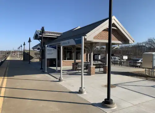 Amtrak spent $1.5 million to improve the station in 2011. It built a new shelter and installed a 550-foot (170 m) long concrete platform, signage and light poles. Developed by d+A Design+Architecture, LLC of Yardley, Pennsylvania, the shelter is composed primarily of rich red brick and has an enclosed, one-story waiting room with large windows. On the facades facing the street and the tracks, the waiting room is marked by stylized projecting bays faced with coursed ashlar stonework that adds texture to the overall elevation. The design is similar to Connellsville station in Pennsylvania.[6] On November 10, 2024, the Capitol Limited was merged with the Silver Star as the Floridian.[7]