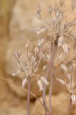 Allium desertorum is a species of onion found in Israel, Jordan, Palestine, and Egypt (including Sinai).[2] It is a small bulb-forming perennial; flowers are white with purple midveins along the tepals.[3][4][5][6][7]