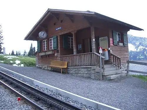 Allmend is a request stop railway station in the municipality of Lauterbrunnen in the Swiss canton of Bern. The station is on the Wengernalpbahn (WAB), whose trains operate from Lauterbrunnen to Kleine Scheidegg via Wengen.[1][2]