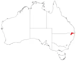 Shrubby she-oak is found among clefts in granite on the slopes of mountains and near creeks between Wyberba in south-eastern Queensland, and Boonoo Boonoo National Park in north eastern New South Wales.[3]