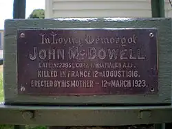 - ^ "John McDowell – Discovering Anzacs". National Archives of Australia. 23 October 2013. Archived from the original on 18 October 2014. Retrieved 10 October 2014.