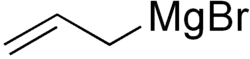 Allylmagnesium bromide is a Grignard reagent used for introducing the allyl group. It is commonly available as a solution in diethyl ether. It may be synthesized by treatment of magnesium with allyl bromide while maintaining the reaction temperature below 0 °C to suppress formation of hexadiene.[1] Allyl chloride can also be used in place of the bromide to give allylmagnesium chloride.[2] These reagents are used to prepare metal allyl complexes.