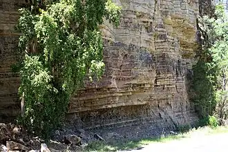 Seen in the Hunter River region near Dungog, this stratum is up to 1,000 metres thick, though 740 metres thick at its type locality. Formed in the Visean between 346.7 and 330.9 Ma., it is part of the Flagstaff Formation of sedimentary rocks.