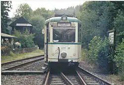 The Alme Valley Railway (German: Almetalbahn) was an approximately 60 km long, mostly single-track branch line from Paderborn via Buren to Brilon in the German state of North Rhine-Westphalia. It is named after the Alme river and runs through its valley in a north–south direction. The line is disused and dismantled between Paderborn and Büren-Weiberg, but it has not been formally closed. The remaining line between Büren-Weiberg and Brilon Wald (forest) was for a long time only used for freight and museum trains, but the section between Brilon Stadt (town) and Brilon Wald has been back in use by regional services since 2011.